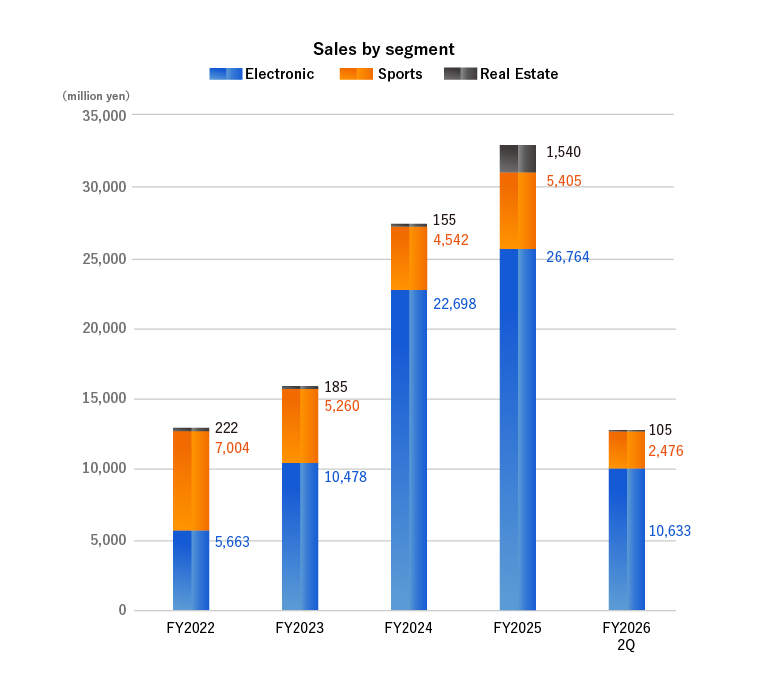 Unit (million yen) FY2022 FY2023 FY2024 FY2025 FY2026 Full year 5,663 10,478 22,698 26,764 – 3Q 3,561 6,398 16,270 22,887 – 2Q 1,992 3,248 9,533 16,508 10,633 1Q 945 1,326 4,573 7,644 6,410