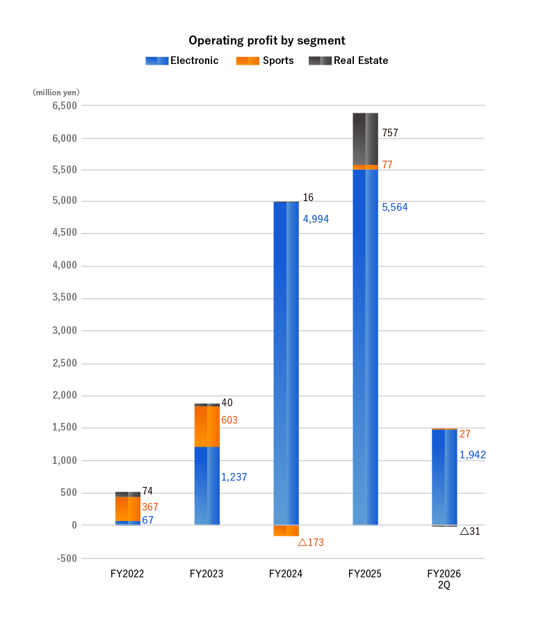 Unit (million yen) FY2022 FY2023 FY2024 FY2025 FY2026 Full year 7,004 5,260 4,542 5,405 – 3Q 4,792 3,678 3,537 4,121 – 2Q 3,183 2,347 2,223 2,641 2,476 1Q 1,541 1,110 1,189 1,290 1,386