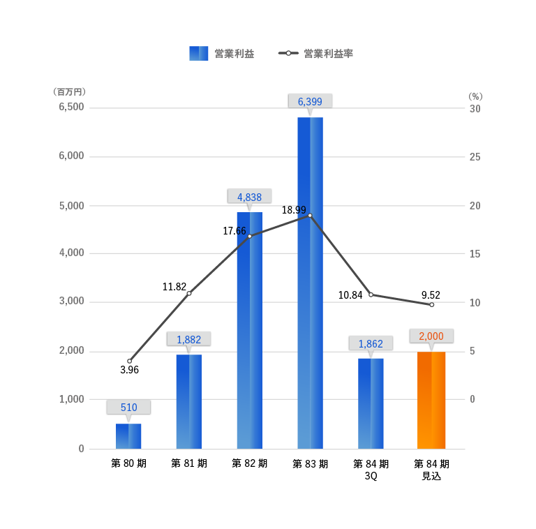 | 単位(百万円) | 第80期 | 第81期 | 第82期 | 第83期 | 第84期 |